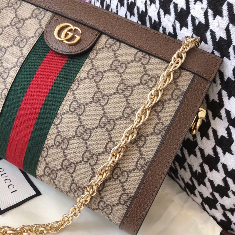 503877 Gucci Ophidia系列小号 GG 嵌花条纹织带 链条肩背包 啡棕