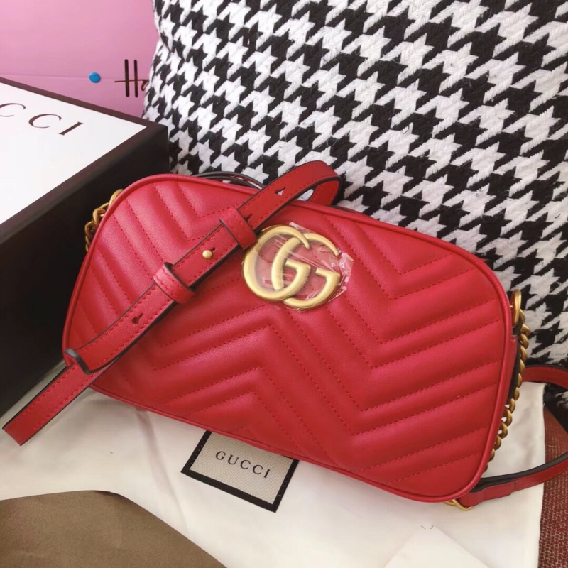 447632 Gucci GG Marmont系列小号绗缝肩背包 古驰相机包 红色