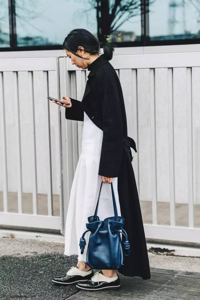 东西放不满时,自然松垮有型,有点像超现实的建筑模型,街拍都洋气潇洒,后背非常帅气。在以mini bag横行的今天,这个包包简直不要太实用,内里空间大,非常能装,适合通勤,休息正装都能搭配。