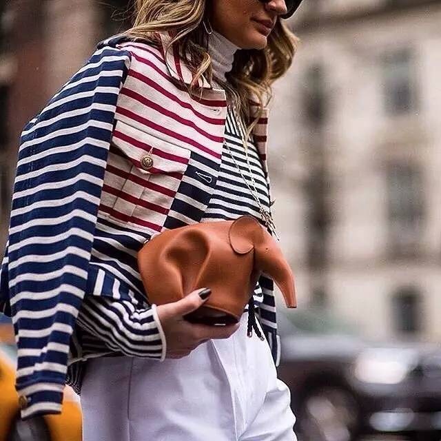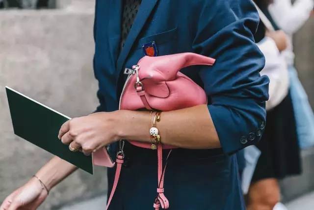 Loewe家除了曝光率最高的这两个包包外,还有一个隐藏的动物系列,实在太萌惹,让人无法忽略。它的出现是个偶然,一位工匠工作室内用余料制作成了小熊、牛等动物,但是要做得这么立体,缝合的工艺要求很高,所以多年来他们只是低调的推出过动物系列零钱包,但不按章出牌的Jonathan Anderson注意到后,意识到这是一个机会,把萌系动物放大,制作成Elephant Bag。