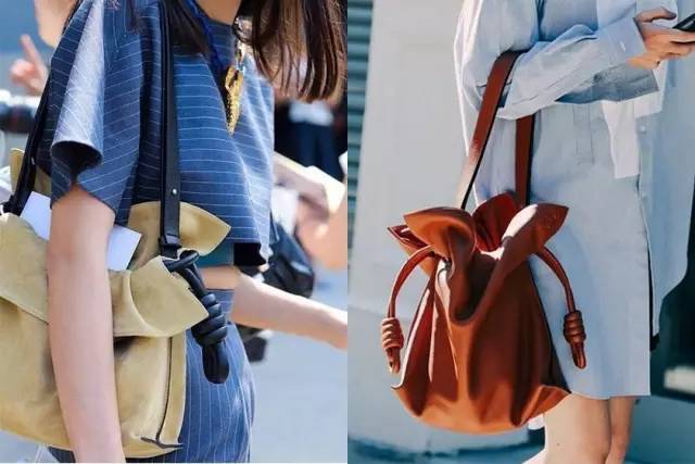 街拍曝光率甚高的Flamenco Knot Bag同样也是品牌的经典款之一,一眼望过去,找不到任何一个冰冷的五金,有种以柔克刚的优雅魅力,抽绳是绳结的细节,温柔又可爱,像小辫子一样晃悠。