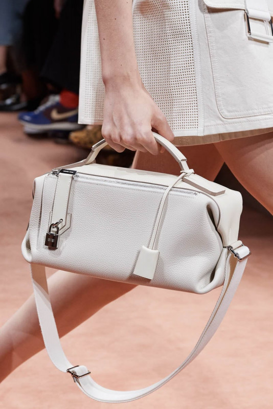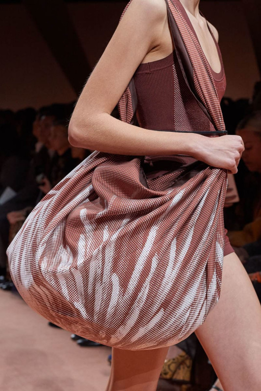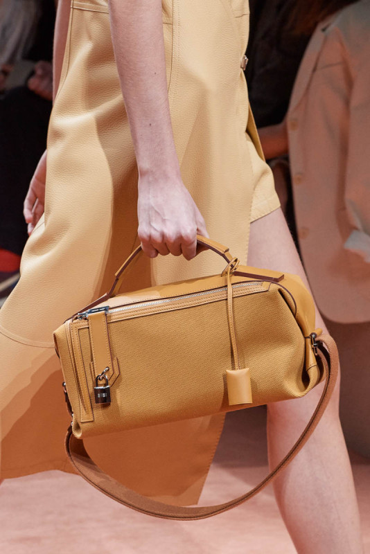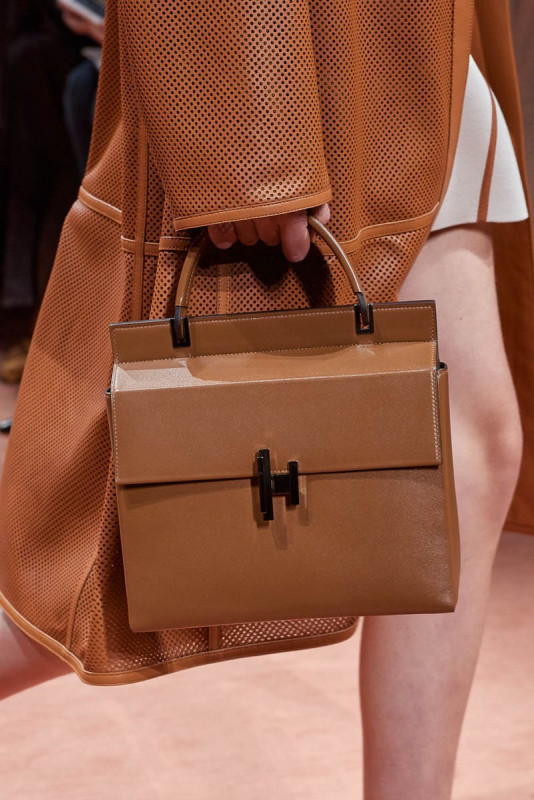 在这次的秀场中除了服饰以外,爱马仕当然也推出了许多全新包袋,让大家眼睛为之一亮。除了爱马仕经典的柏金包和凯莉包之外,这一季的新版方形包袋,透过不同材质的碰撞结合,打造了与众不同的休閒时髦感。2020春夏系列包袋多採用简约的设计,立体外形、创意的构造碰撞和多体系的色彩对称,让包袋展现出与以往不同的风格 。且在顏色上也非常多变,包括绿色、奶油色、棕褐色、海军蓝、勃根第色和黑色。