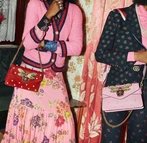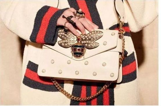 有人会问,为什么要用蜜蜂元素?是要求姐妹们要朝五晚九勤劳不懒惰吗?当然不是啦,蜜蜂在拿破仑时期就被视作皇权的象征,经常出现在皇家服装、皇室器具上,GUCCI把蜜蜂作为品牌元素之一,几乎出现在Alessandro Michele每一季的作品当中。