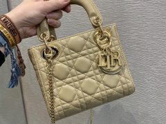 迪奥戴妃包官网图片价格 LADY DIOR四格浅杏色