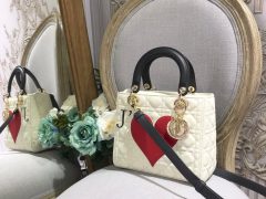 迪奥专柜最新戴妃五格 LADY DIOR白色中号牛皮革J'AIME图案手袋