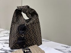 經典雙F布料Logo搭配深棕色皮革, 拉鏈式開合打造私密屬性,容量足,顏值高,