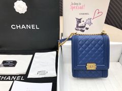 香奈儿宝蓝色中号 油腊皮口盖包配手柄 手堤包coco handle bag 单肩包