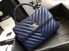 小香Trendy bag CC 深蓝色V形羊皮手提口盖包