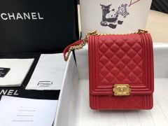 香奈儿包包价格 INCAS 颗粒压花 大红色水洗胎牛皮坚款LE BOY CHANEL口盖包