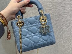 迪奥香港专柜价格 三格迷你LADY DIOR 手袋马卡龙蓝