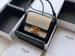 瑟琳CELINE 新款凯旋门box小号17cm TRIOMPHE织物面料拼接天然小牛皮肩背包