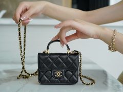 chanel盒子包價格 Qatar chanel Woven handle box bag 黑金 羊皮