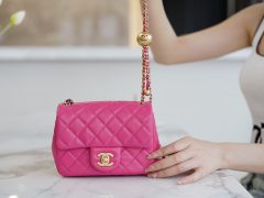 香港香港島中西區山頂 香奈兒 25p 魚子醬小牛皮 手柄風琴包 淡粉色