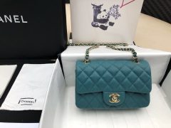 小香经典口盖包方胖子 Small Classic Flap Bag 迷你经典口盖包 湖水绿色 颗粒压花小牛皮与金色金属