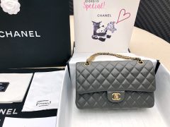 香奈儿官网女包 Classic Flap Bag 雾霾蓝羊皮菱格链条经典口盖包 浅金色金属