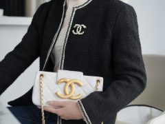 香奈兒包包經典款圖片 香奈兒法棍包尺寸 𝟐𝟒𝐂小羊皮 復古大Logo法棍包黑色