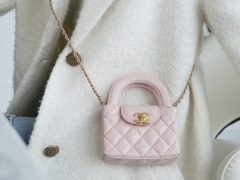 香港香港島中西區山頂 香奈兒 25p 魚子醬小牛皮 手柄風琴包 淡粉色