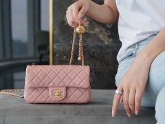 香港香港島中西區山頂 香奈兒 25p 魚子醬小牛皮 手柄風琴包 淡粉色