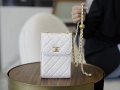香港香港島中西區山頂 香奈兒 25p 魚子醬小牛皮 手柄風琴包 淡粉色