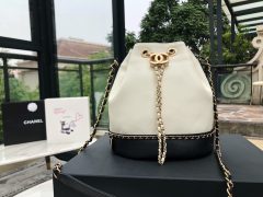 日本 Japan chanel水桶包 小羊皮配顆粒壓花小牛皮 與金色金屬 抽繩包