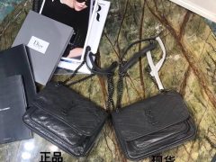 翻盖包,饰以真皮包覆的 YSL 标志,配以可单肩斜跨两用的真皮加固肩带链。