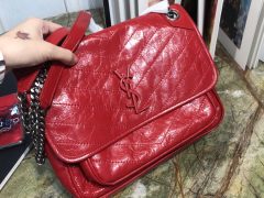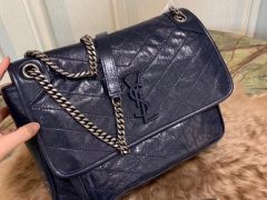 圣罗兰包包官网 YSL Baby Niki 藏蓝色褶皱绗缝真皮链条包