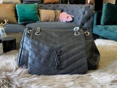 SAINT LAURENT 标志正面翻盖包,配有 YSL 金属标志、单肩斜跨两用链条真皮肩带、一个中央隔层及一个开口后袋。