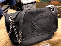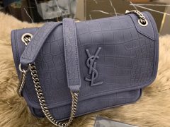 圣罗兰包包 YSL NIKI 大号鳄鱼纹压花黑色麂皮链条包