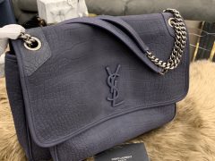 圣罗兰 ysl官网包包中国官网 NIKI 迷你号鳄鱼纹压花 蓝色麂皮链条包
