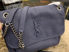 圣罗兰包包 YSL NIKI 大号鳄鱼纹压花蓝色麂皮链条包