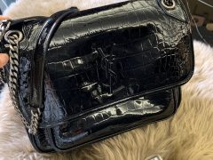 圣罗兰官网 包包图片价格 YSL NIKI 迷你鳄鱼纹黑色漆皮包