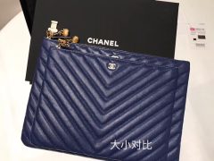 18年早春新款猫头鹰系列手拿包 哑光小颗粒牛皮V线口袋款蓝色