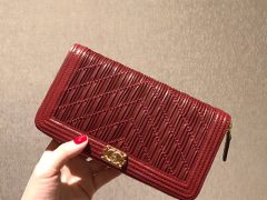 2018早春希腊系列 山形纹缝线复古五金 单拉链长款褶皱钱包