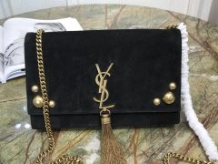 圣罗兰YSL包包 2018秋冬新款经典 KATE 中号饰钉黑色 麂皮链条包