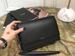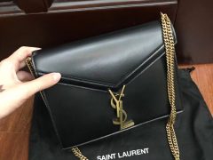 圣罗兰香港包包官网 YSL CASSANDRA 黑色真皮链条包