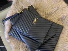 MONOGRAM 大号手包,配可以拆卸手腕带,百分百进口小牛皮,罗缎内里,包内有卡槽有平口袋!黑色搭配金色调五金!拉链封口!