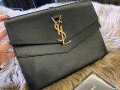 MONOGRAM 大号手包,配可以拆卸手腕带,百分百进口小牛皮,罗缎内里,包内有卡槽有平口袋!黑色搭配金色调五金!拉链封口!