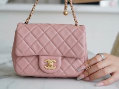香港香港島中西區山頂 香奈兒 25p 魚子醬小牛皮 手柄風琴包 淡粉色