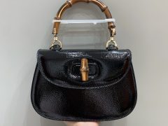 這款晚裝包采用薄荷綠色雲紋織物面料打造,其上運用璀璨綠色水晶刺繡勾勒出「GG」徽標。最大亮點是金屬包扣中央飾以壹枚立體蝴蝶結,鋪陳綠色水晶與包身相映襯,充滿嬌俏華麗氣息。