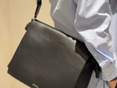 首發系列共推出迷妳、中號和大號3種尺寸規格,采用光面小牛皮外觀搭配絨面麂皮裏襯,外縫+內縫相結合的拼縫線條讓包包呈現精巧雕塑感廓形,極簡純色包身低調點綴燙金徽標。