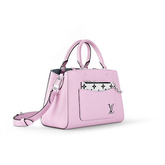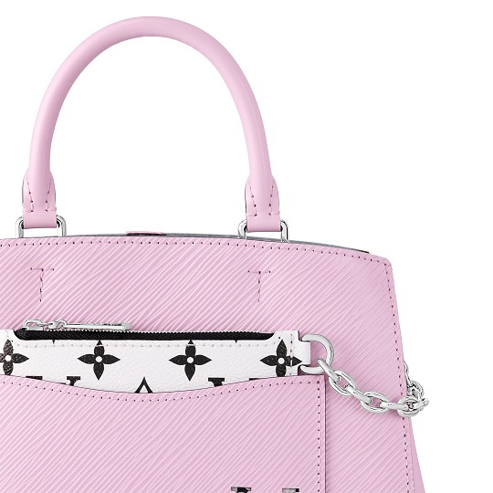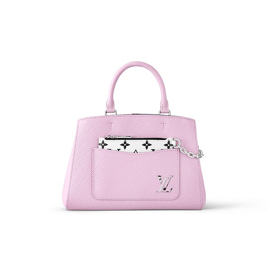 Marelle Tote BB 手袋延續系列包款標志性的镂空口袋和可拆卸拉鏈包設計,小巧實用的托特包型通勤度假皆宜,本季采用淺粉色包身搭配白色 Monogram 拉鏈袋。