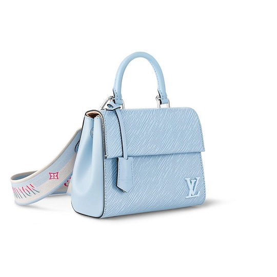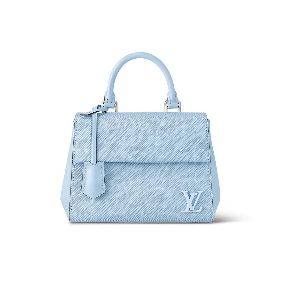 Cluny 迷妳手袋采用 Epi 紋理皮革和光滑牛皮革拼接而成,右下角點綴壹枚漆刷同色塗層的「LV」樹脂徽標,可拆卸寬幅肩帶實現舒適肩背。本季新增天青色和飛羽黃2種配色,清爽淺色系浸染夏日情調。