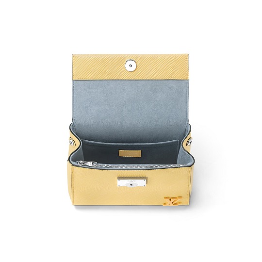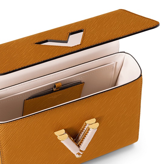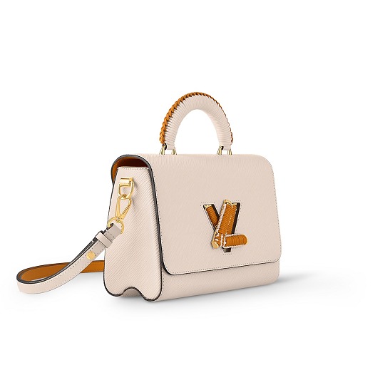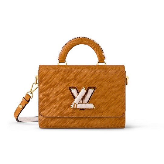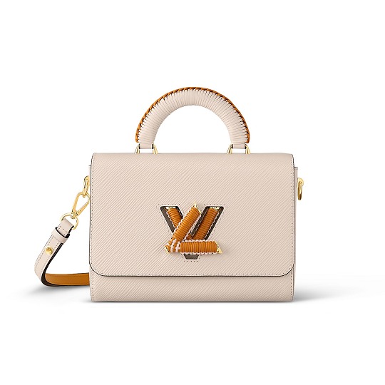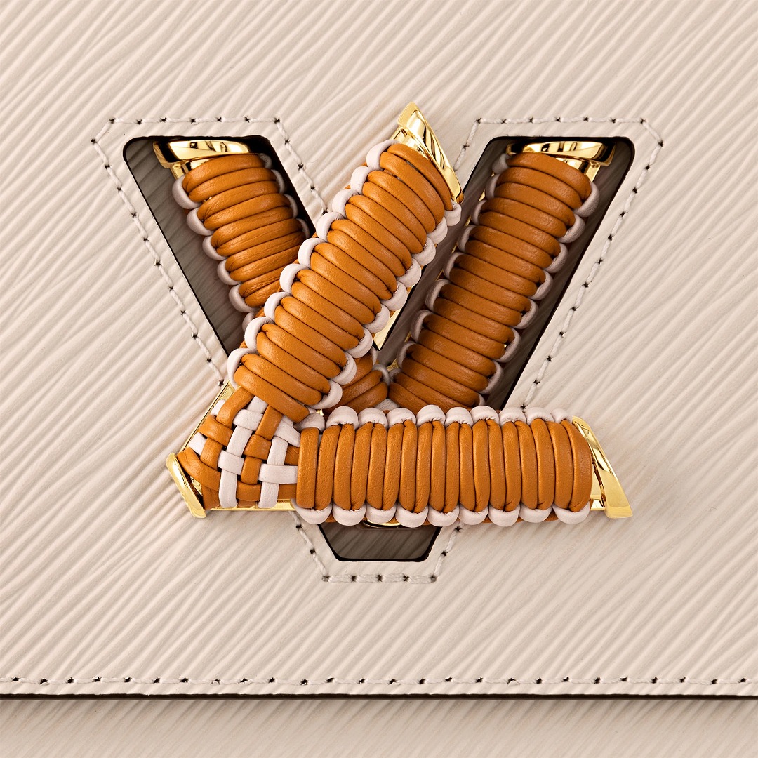 Twist 手袋是 Louis Vuitton Epi 皮革系列的當家花旦,采用簡潔方正的翻蓋包型搭配精巧 LV 扭鎖,底部波浪型設計與 Epi 皮革的波浪紋形成呼應。新季亮點是在 LV Twist 扭鎖和手柄上加入編織皮革裝飾,爲包包增添精致手工藝細節。推出焦糖棕黃和米色2款配色選擇。