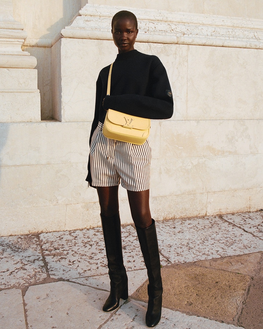 Buci 手袋采用線條柔和的經典翻蓋包型,光滑皮革包角爲包包增添複古格調,樹脂 LV 標識成爲最引人注目的裝飾,淺色 Epi 皮革注入夏日元氣。