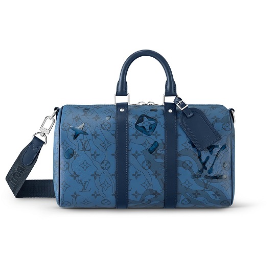 海軍藍色是所有男士都鍾愛的顔色之壹,本次推出迷妳 Soft Trunk 軟盒包、Keepall 35 波士頓包、Discovery 腰包和 Christopher 中號雙肩包4款包袋,Monogram 帆布上呈現海藻花園的汩汩水痕,爲包包增添浪漫氣息。