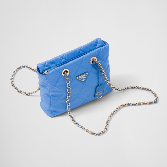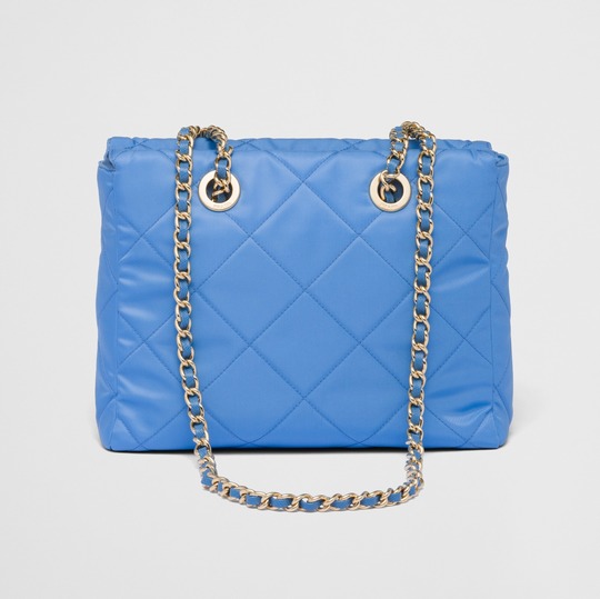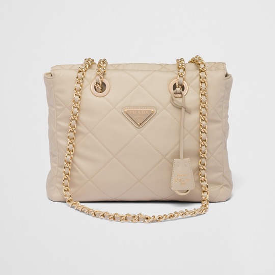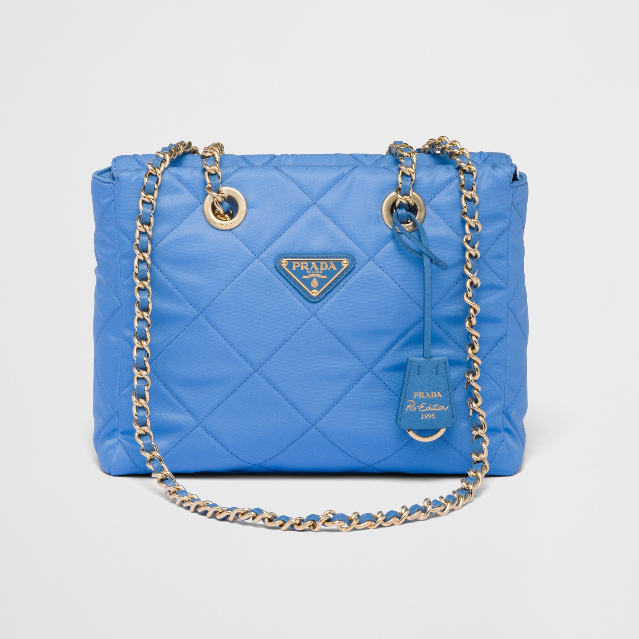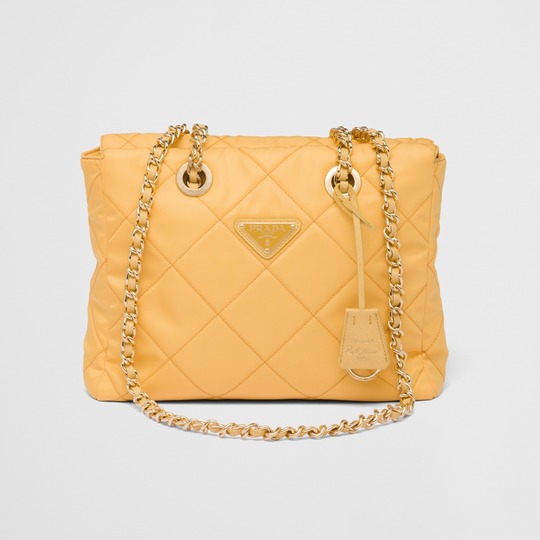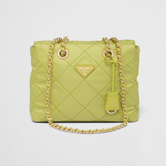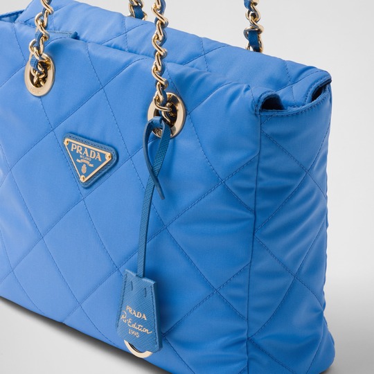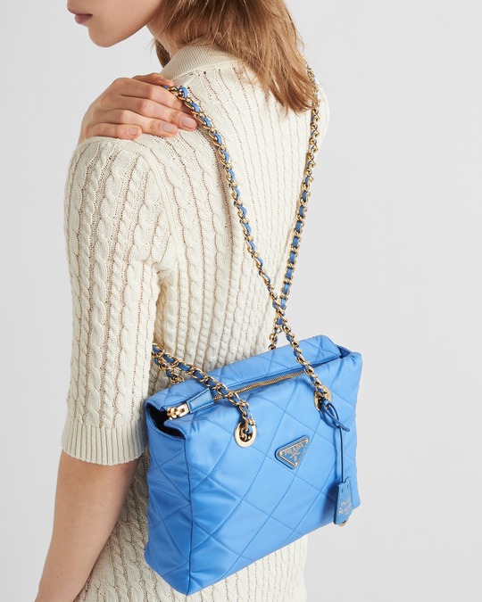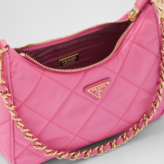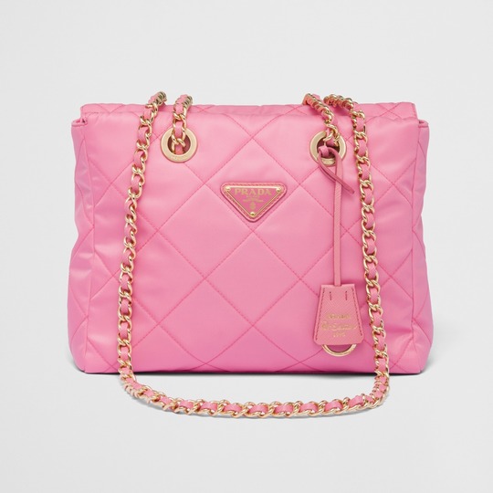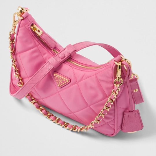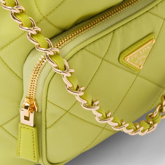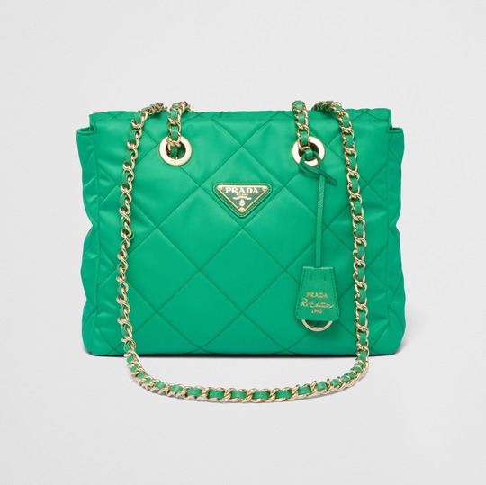 Prada 本周上市壹組新包袋,采用再生尼龍面料制作水桶包、托特包和單肩包,亮點是運用绗縫加襯工藝塑造出菱格紋圖案,搭配缤紛鮮亮的糖果色彩,像是軟糖般蓬軟可愛。