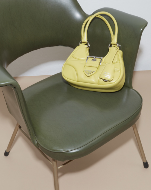 純色PradaMoon手袋勾畫流暢線條與利落形態,推出多款色彩可選,包含淺藍色、檸檬黃、天竺葵粉與芒果色,搭配同色手柄、肩帶與可拆卸鑰匙環,精巧而和諧的設計造就百搭必備單品,又壹款Prada經典之作就此誕生。