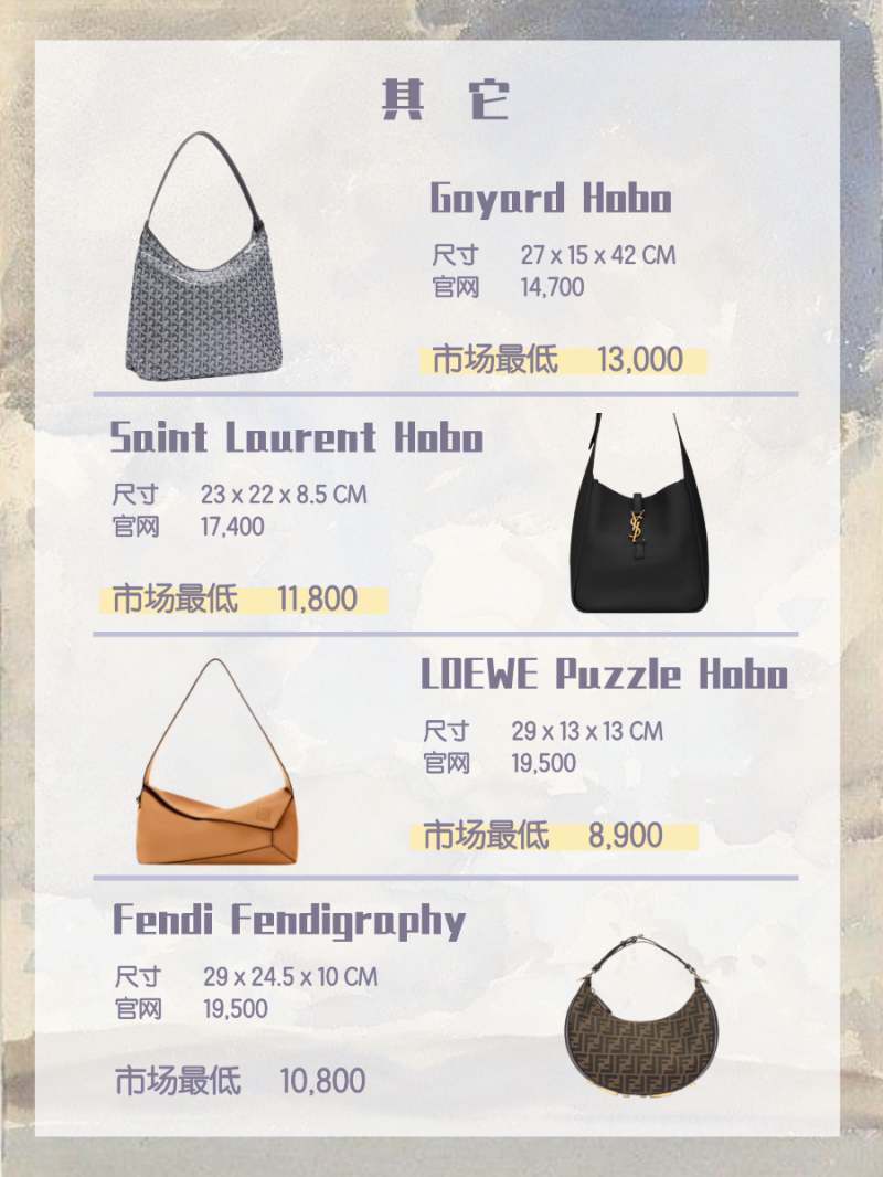 Prada Hobo手袋、Prada Symbole大號托特、BALENCIAGA巴黎世家沙漏包和加大版的Crush、Goyard Hobo、YSL聖羅蘭的Hobo包、Loewe羅意威的Puzzle Hobo、FENDI的Hobo,不知道有沒有妳正好喜歡的那壹只呢?