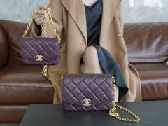 香奈儿香港元朗专柜 金币链条口盖包小号紫色