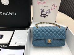 香奈儿官网女包 Classic Flap Bag 雾霾蓝羊皮菱格链条经典口盖包 浅金色金属